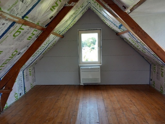 Op de eerste verdieping heb je op dit moment 1 open ruimte met mogelijkheid voor 2 slaapkamers. Of 1 ruime slaapkamer met badkamer ensuite (leidingen zijn reeds voorzien).