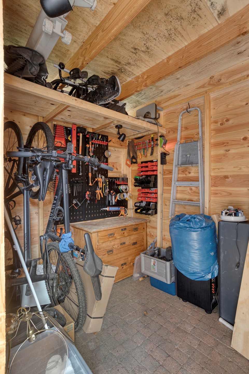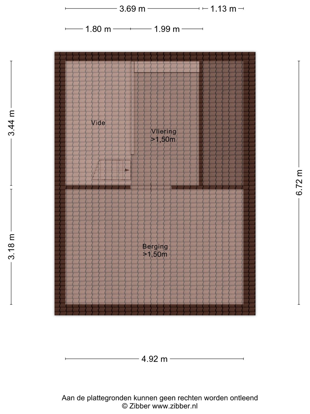 De bergzolder is bereikbaar met een trapje.